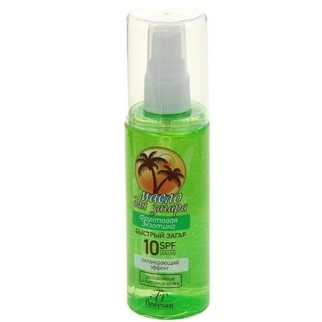 Витаминизированное косметическое масло с фантазийным ароматом экзотических фруктов является прекрасным средством для быстрого получения и усиления загара. <br />Двухфазная структура масла, обеспечивает легкую и нежную текстуру, благодаря которой масло легко наносится и распределяется на коже, быстро впитывается и оставляет на коже комфортную защитную пленку. <br />Витамин E и биоактивные компоненты соевого масла препятствуют вредному действию жестких УФ – лучей, предотвращают появление ожогов, предупреждают световое старение кожи, питают и смягчают ее. <br />Комплекс природных увлажнителей нормализует уровень влаги в клетках кожи, исключая появление сухости и шелушения на коже.