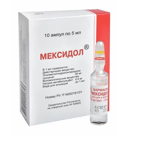 | Мексидол® | Р-р д/в/в и в/м введения 50 мг/1 мл: амп. 2 мл 5, 10, 20, 50 или 100 шт. или 5 мл 5, 10, 15, 20, 50 или 100 шт. рег. №: ЛП-(000107)-(РГ-RU) от 29.12.20 *- Бессрочно* Предыдущий рег. №: Р N002161/01 |