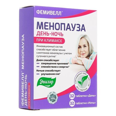 Растительное негормональное средство для облегчения симптомов менопаузы 24 часа в сутки: днем способствует сокращению приливов, спокойствию и энергии, ночью - восстановлению сна