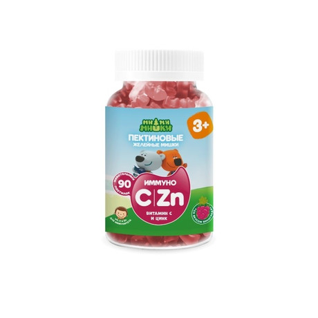 Пектиновые жевательные пастилки с витамином С и цинком в форме мишек, желейные. Витамин С усиливает иммунитет и повышает сопротивляемость организма инфекциями и вирусам. Цинк играет важную роль в формировании крепкой иммунной системы детского организма. Без искусственных красителей и ароматизаторов.