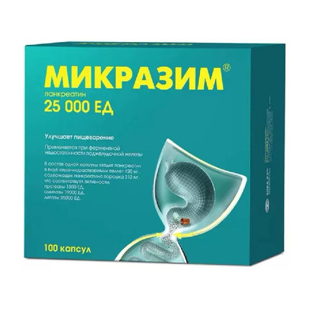 Микразим® - пеллеты панкреатина в капсулах. В состав препарата входят натуральные ферменты из поджелудочной железы животных - протеаза, липаза и амилаза, обеспечивающие переваривание белков, жиров и углеводов пищи.