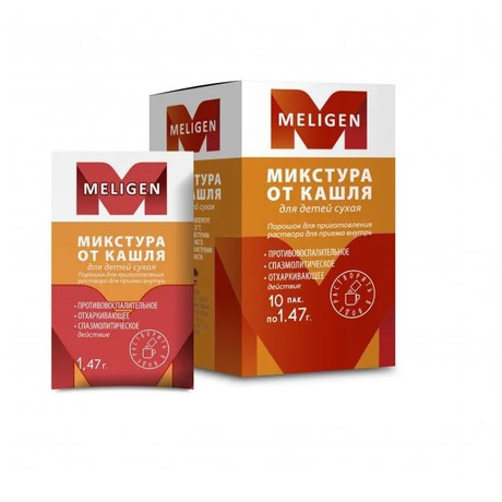 | Микстура от кашля для детей сухая | Порошок д/пригот. р-ра д/приема внутрь: пак. 1.47 г 5, 10, 12, 15, 20, 25, 30, 40, 50, 100, 200, 300 или 600 шт. рег. №: ЛП-007017 от 19.05.21 *- Действующее* |