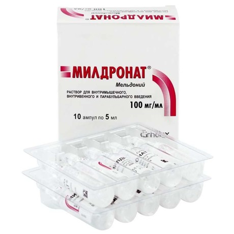 При ИБС (инфаркт миокарда) в составе комплексной терапии препарат назначают в/в струйно по 0.5-1.0 г/сут (5-10 мл препарата Милдронат®), применив всю дозу сразу или разделив ее на 2 введения.