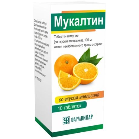 | Безрецептурный препарат | Мукалтин | Таблетки шипучие (со вкусом апельсина) 100 мг: 6, 8, 10, 12, 16, 20, 30 или 40 шт. рег. №: ЛП-007627 от 23.11.21 *- Действующее* |