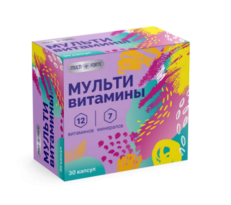 Мультивитаминный комплекс является источником важных витаминов и минералов для организма человека. В составе целый комплекс витаминов, который укрепляет иммунитет и помогает бороться с инфекциями. Также в продукте содержится витамины группы В, которые важны для нервной системы, при повышенных умственных нагрузках. Рекомендуется принимать ежедневно как дополнительный источник витаминов и минералов. Препарат подходит взрослым старше 18 лет. Восполнение и предупреждение дефицита витаминов Профилактика вирусных заболеваний Укрепление иммунитета Повышенные эмоциональные и физические нагрузки Восстановление организма после перенесенных заболеваний Повышенная потребность в витаминах при соблюдении постов и диет