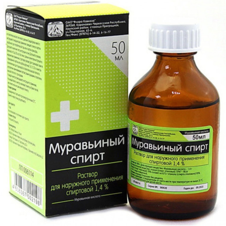 | Муравьиный спирт | Р-р д/наружн. прим. (спиртовой) 1.4%: фл. 30 мл, 50 мл, 80 мл или 100 мл рег. №: ЛП-001916 от 29.11.12 *- Бессрочно* Дата перерегистрации: 30.11.17 |