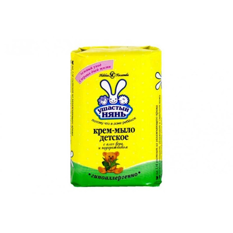 Другие формы «Мыло детское УШАСТЫЙ НЯНЬ»Детское крем-мыло с Алоэ вера и подорожником Ушастый Нянь - это натуральное крем-мыло, изготовленное на основе натуральных жиров и масел, предназначенное для употребления с первых дней жизни. В основу мыла добавлена 1/4 увлажняющего крема, который делает уход за кожей более мягким; мыло нежно очищает и не сушит детскую кожу. Входящий в состав экстракт подорожника обладает противовоспалительными и ранозаживляющими свойствами. Экстракт алоэ вера обладает выраженными антиоксидантными и бактерицидными свойствами.