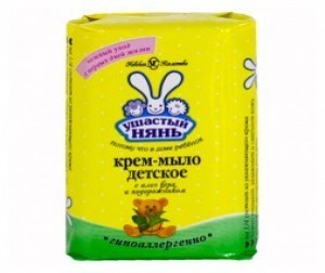 Другие формы «Мыло детское УШАСТЫЙ НЯНЬ»Кожа маленького ребенка очень чувствительная, поэтому детские сорта мыла производятся исключительно из натуральных компонентов, содержат специальные смягчающие вещества (ланолин, глицерин, растительные масла) и противовоспалительные вещества растительного происхождения.