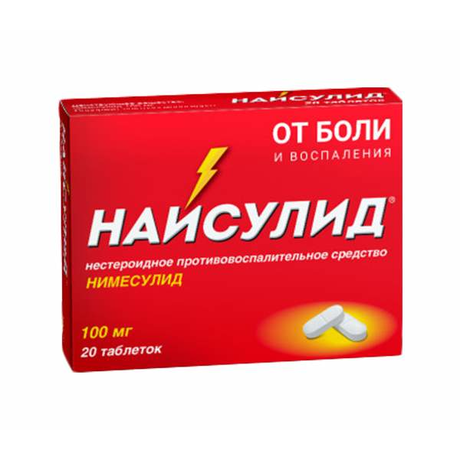 | Найсулид® | Таб. 100 мг: 10, 15, 20, 30, 40, 45, 50, 60, 75, 80, 90, 100, 120, 150 или 180 шт. рег. №: ЛП-(000660)-(РГ-RU) от 30.03.22 *- Действующее* Предыдущий рег. №: ЛП-001625 |