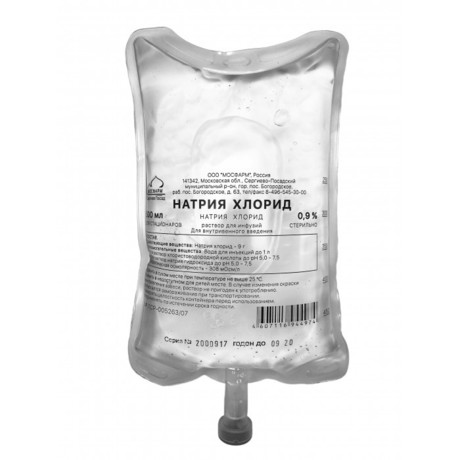 | Натрия хлорид | Р-р д/инф. 0.9%: фл. 200 мл или 400 мл рег. №: ЛСР-005263/07 от 25.12.07 *- Бессрочно* |