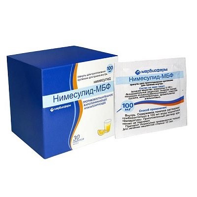 | Нимесулид-МБФ | Гранулы д/пригот. сусп. д/приема внутрь 100 мг/1 пак.: пак. 2 г 5, 10, 20 или 30 шт. рег. №: ЛП-003999 от 06.12.16 *- Действующее* Дата переоформления: 12.11.21 |