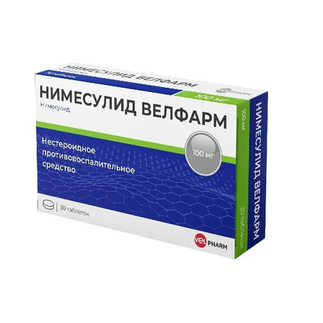 | Нимесулид Велфарм | Таб. 100 мг: 10, 15, 20, 30, 40, 45, 50, 60, 70, 75, 80, 90, 100, 105, 120, 135, 140, 150, 160, 180, 200, 210, 240, 270 или 300 шт. рег. №: ЛП-005328 от 31.01.19 *- Действующее* |
