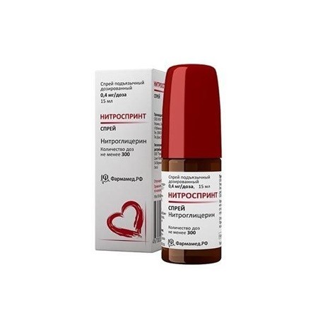 | Нитроспринт | Спрей подъязычный дозированный 400 мкг/1 доза: флакон 15 мл (300 доз) с механическим насосом и распылителем рег. №: ЛП-000236 от 16.02.11 *- Бессрочно* Дата переоформления: 09.12.21 |