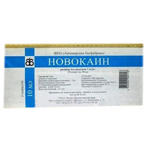 Новокаин - местноанестезирующее. Нарушает генерацию и проведение нервных импульсов в основном в немиелиновых волокнах. Являясь слабым основанием, взаимодействует с рецепторами мембранных натриевых каналов, блокирует ток ионов натрия, вытесняет кальций из рецепторов, расположенных на внутренней поверхности мембраны.