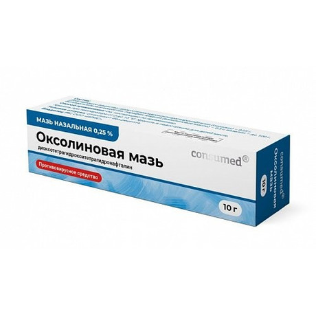 Действующее вещество: диоксотетрагидрокситетрагидронафталин (оксолин) - 0,25 г.