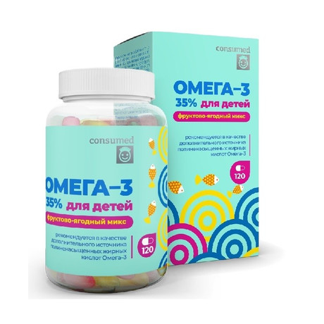 Жир океанических рыб, оболочка (глицерин (пластификатор), желатин, крахмал картофельный, вода, ароматизаторы натуральные ("Клубника", " Малина", "Лимон", "Мультифрукт", "Яблоко"), красители натуральные, кармин (для капсул со вкусом малины, клубники), рибофлавин (для капсул со вкусом "Мультифрукт"), хлорофилл (для "Лимон", "Мультифрукт", "Яблоко"), антиокислители (смесь токоферолов, аскорбил пальмитат).