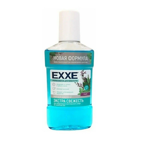 поласкиватель для полости рта Экстра свежесть "Мята и шалфей" для ежедневного комплексного ухода за полостью рта: защищает от налета и зубного камня, обладает отбеливающим эффектом, освежает дыхание. Ополаскиватель для полости рта ЕХХЕ содержит в составе комплекс экстрактов и компонентов, обладающий общеукрепляющими свойствами и освежающим эффектом. Укрепляет десны, освежает дыхание, оказывает противовоспалительное действие. Экстракт лимона обладает витаминизирующим и отбеливающим эффектом. Рекомендуется использовать в комплексе с зубной пастой ЕXXE для длительной свежести дыхания и предупреждения развития кариеса и пародонтита.