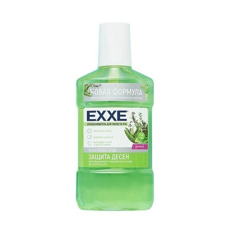 поласкиватель для полости рта ЕХХЕ содержит в составе комплекс экстрактов и компонентов, обладающий общеукрепляющими свойствами и освежающим эффектом. Эфирные масла эвкалипта, тимьяна и экстракт аира укрепляют десны, ментол освежает дыхание и оказывает противовоспалительное действие, тетракалия пирофосфат растворяет зубной налет. Рекомендуется использовать в комплексе с зубной пастой ЕXXE для длительной свежести дыхания и предупреждения развития кариеса и пародонтита.