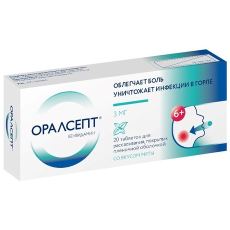 | Оралсепт® | Таблетки для рассасывания, покрытые пленочной оболочкой 3 мг: 10 или 20 шт. рег. №: ЛП-004995 от 16.08.18 *- Действующее* Дата переоформления: 01.09.22 |
