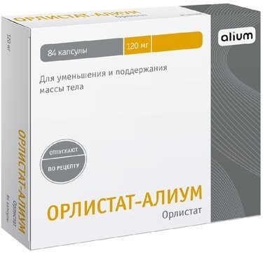 | Орлистат-Алиум | Капс. 120 мг: 7, 14, 21, 28, 42, 63 или 84 шт. рег. №: ЛП-(000627)-(РГ-RU) от 15.03.22 *- Действующее* Предыдущий рег. №: ЛП-003057 |