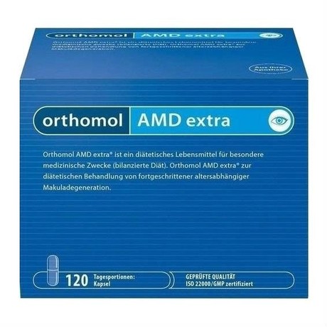 Orthomol AMD Extra предназначен для диетического управления появления возрастной макулярной дегенерации. Ортомол АМД Экстра надежная защита для зрения. Orthomol AMD Extra дополнительные компоненты для специальных медицинских целей (сбалансированная диета)