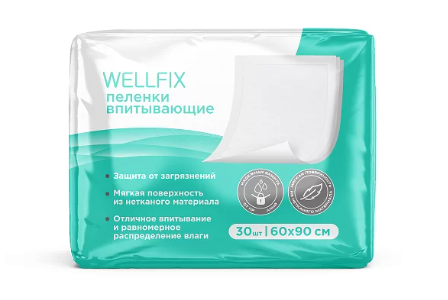 Одноразовые пеленки Wellfix из мягкого материала обеспечивают комфортный уход за лежачим больным, защищая кожу от раздражения, бельё от загрязнения.