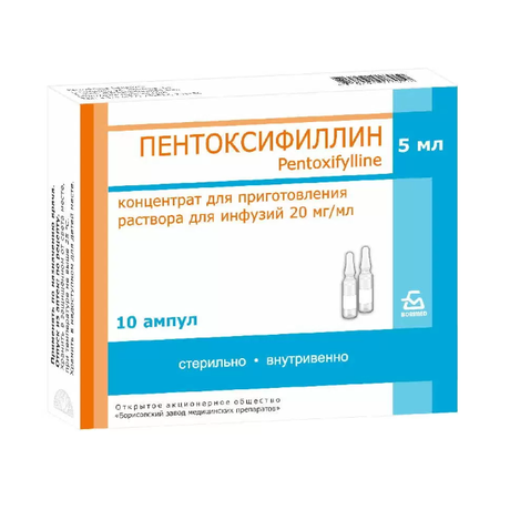 | Пентоксифиллин | Р-р д/инъекц. 2% (100 мг/5 мл): амп. 10 шт. рег. №: П N015494/01 от 20.03.09 *- Бессрочно* |