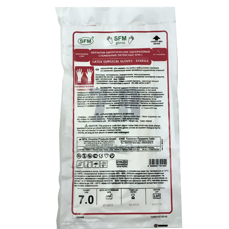 ПЕРЧАТКИ ХИРУРГИЧЕСКИЕ SFM ЛАТЕКСНЫЕ СТЕРИЛЬНЫЕ АНАТОМИЧЕСКИЕ - для работ в медицинских, хирургических целях.