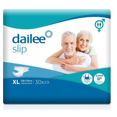 Подгузники при использовании не выделяют вредных веществ, в воздушной среде и в присутствии других веществ не образуют вредных соединений. Подгузники для взрослых Dailee (Drylock Technologies ) выпускаются в трех исполнениях: Extra Plus, Super, Super Plus. Каждое исполнение в зависимости от обхвата талии имеет четыре группы: Small (малые), Medium (средние), Large (большие) и Х-Large (сверхбольшие). Размер изделия малый (S) - объем талии от 55 см. до 80 см. Впитываемость (полное влагопоглощение) изделия не менее 1000 г Размер изделия средний (M) - объем талии от 75 см. до 110 см. Впитываемость (полное влагопоглощение) изделия не менее 1300 г Размер изделия большой (L) - объем талии от 100 см. до 150 см. Впитываемость (полное влагопоглощение) изделия не менее 1450 г Размер изделия большой (XL) - объем талии от 130 см. до 175 см. Впитываемость (полное влагопоглощение) изделия не менее 1450 г