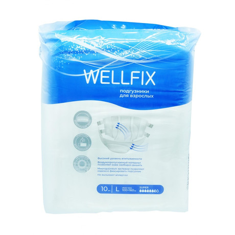 высокий уровень впитываемости воздухопропускаемый материал позволяет коже свободно дышать многоразовые застежки позволяют надежно фиксировать подгузник не вызывают аллергии Изделие одноразового использования, предназначенное для впитывания и удерживания мочи, используемое для ухода за больными, страдющими средней и тяжелой степенью недержания.
