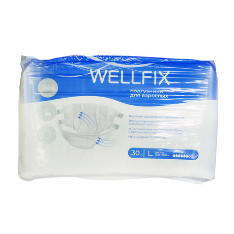 высокий уровень впитываемости воздухопропускаемый материал позволяет коже свободно дышать многоразовые застежки позволяют надежно фиксировать подгузник не вызывают аллергии Изделие одноразового использования, предназначенное для впитывания и удерживания мочи, используемое для ухода за больными, страдющими средней и тяжелой степенью недержания.