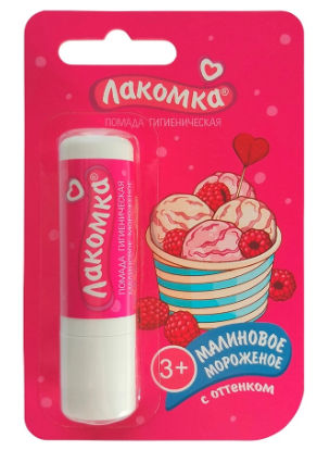 ЛАКОМКА ПОМАДА ГУБНАЯ ГИГИЕНИЧЕСКАЯ МАЛИНОВОЕ МОРОЖЕНОЕ - придает губам легкий малиновый оттенок. Возраст: старше 3-х лет.