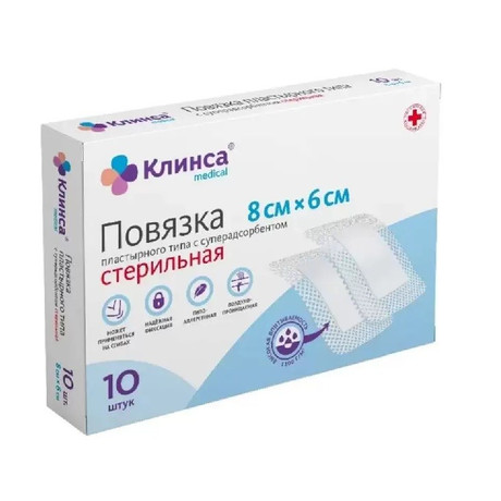 Повязка пластырного типа с суперадсорбентом 8х6 см. Повязка имеет не прилипающую к ране подушку, которая эффективно впитывает и удерживает раневой экссудат, способствуя быстрому заживлению раны. Фиксирующая основа изготовлена из мягкого эластичного нетканого материала, благодаря которому повязка надежно держится на подвижных частях тела, сгибах суставов. Пористая структура обеспечивает воздухопроницаемость, а гипоаллергенная клеевая основа не вызывает раздражение кожи. Повязка отлично приклеивается к коже, легко снимается, не оставляя следов. Для одноразового применения. Стерильность гарантирована.