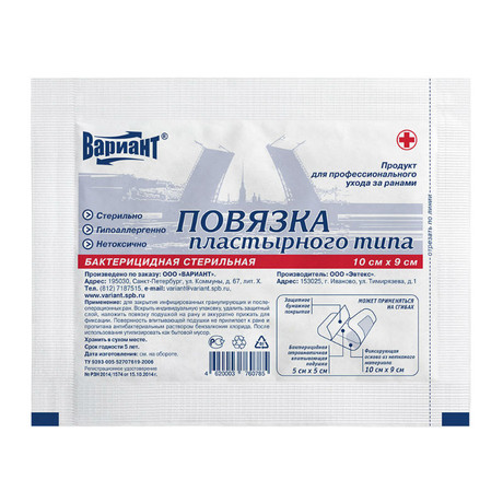Фиксирующая основа из нетканого полотна с гипоаллергенным акриловым клеевым слоем, впитывающая подушка из нетканого материала, пропитанная антибактериальным раствором хлорида бензалкония.