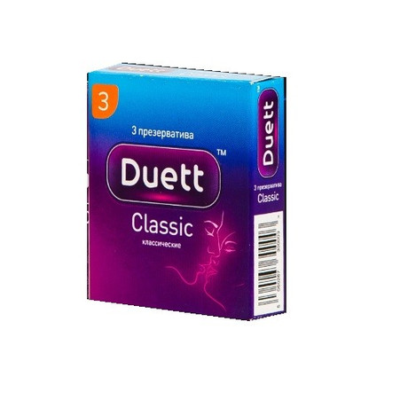 ПРЕЗЕРВАТИВЫ DUETT CLASSIC КЛАССИЧЕСКИЕ - какие ассоциации возникают у вас при слове «Классика»? Будь то в искусстве, стиле, или сексе? Конечно, это надежность, уверенность и постоянность. Те самые понятия, которые никогда не будут банальными. Классические презервативы DUETT Classic - это оптимальный вариант прочных и надежных презервативов. Они сохраняют ощущения и комфорт партнеров при любых движениях, и по праву подтверждают правильность вашего выбора. Три презерватива Duett Classic с накопителем, гладкие, с силиконовой смазкой, классические. Смазка не разрушает сперматозоиды. Презервативы Duett™ произведены из натурального латекса. Протестированы электроникой.