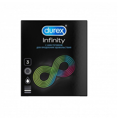 Презервативы Durex Infinity для продления полового акта, а также предотвращения преждевременной эякуляции. Презервативы Durex Infinity содержат смазку с добавлением анестетика (бензокаина) внутри презерватива и обычную силиконовую смазку снаружи. Для продления полового акта, а также предотвращения преждевременной эякуляции. Благодаря технологии производства не имеют неприятного запаха. Все предусмотрено для того, чтобы вы могли расслабиться и наслаждаться безопасным сексом.