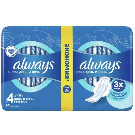 Бренд Always - является одним из мировых лидеров в производстве и продаже средств женской гигиены. ALWAYS ULTRA NIGHT ЖЕНСКИЕ ГИГИЕНИЧЕСКИЕ ПРОКЛАДКИ - тройная защита от Always - не соглашайтесь на меньшее! Впитываемость: 6 капель (из 8) Размер: 4 Always Ultra Night (Размер 4) с крылышками используется новейшая технология для создания многофункциональной гигиенической прокладки с 3 элементами защиты в дневное и ночное время. Система СразуСухо впитывает влагу за считанные секунды и не дает ей соприкасаться с кожей. Технология ЗащитныеБарьеры удерживает жидкость, предотвращая протекания. Технология БлокЗапаха нейтрализует неприятные запахи, придавая ощущение свежести и чистоты во время менструации. С Always Ultra вы можете чувствовать себя уверенно весь день. Формула дерматологически одобрена Ассоциацией здоровья кожи (Skin Health Alliance). Обеспечьте себе наилучшую защиту с помощью Always My Fit - специальной системы определения размера, которая помогает правильно подобрать прокладку ALWAYS на основании количества выделений и размера трусиков. Гигиенические прокладки не раздражают кожу (доказано дерматологами) Крылышки помогают удерживать прокладку на месте для надежной защиты и ощущения комфорта