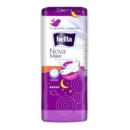 Bella Nova Maxi – гигиенические прокладки увеличенного размера с крылышками, для использования ночью и при обильных выделениях, традиционной толщины.