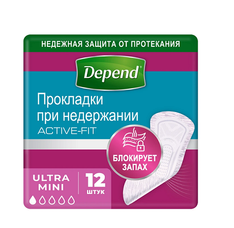 Урологические прокладки Depend Ultra Mini 12 штук. Защита, обеспечивающая свободу движения. Преимущества: специально разработанные прокладки Active-Fit (Эктив Фит) помогают обеспечить незаметную и комфортную защиту даже когда Вы активны. Благодаря инновационному дизайну и современным технологиям они тонкие и гибкие, как ежедневные прокладки, и такие же невидимые для окружающих.