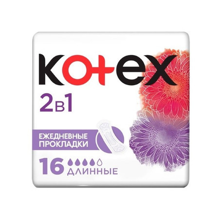 Бренд Kotex® Ежедневные прокладки Kotex® 2в1 Длинные Вппитываемость 4 капли из 5. Толщина 1,67 мм Ежедневные прокладки Kotex® 2в1 созданы специально для тех моментов, когда вам необходима дополнительная защита! Kotex® 2в1 обеспечивает защиту от всех видов выделений - ежедневных и при недержания мочи. Специальный центр FlexLocTM содержит суперабсорбент, который надежно удерживает влагу внутри и нейтрализует запах урины, даря ощущение свежести и уверенности на весь день. Тонкая, длинная и гибкая, ежедневная прокладка надежно держится на белье и адаптируется под анатомию тела, обеспечивая чувство комфорта и легкости. Несмотря на свою тонкость, благодаря усиленному абсорбирующему слою она впитывает не меньшее количество жидкости, чем более толстые ежедневки, представленные на рынке. Не содержит ароматизаторы. Каждая прокладка упакована в индивидуальный пауч, который удобно брать с собой - поместится даже в самой маленькой сумочке.