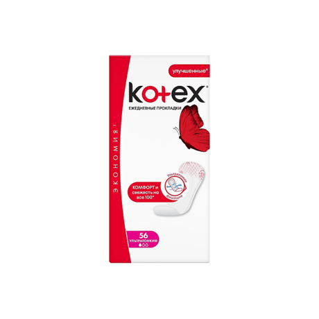 Бренд KOTEX - это бренд средств гигиены женщин в критические дни. Бренд принадлежит производственной компании Кимберли Кларк. Бренд гигиенической продукции марки очень разнообразен, что позволяет без труда подобрать подходящий именно для себя и конкретной ситуации вариант защиты. KOTEX ПРОКЛАДКИ ЕЖЕДНЕВНЫЕ SUPER SLIM - ультратонкие дышащие ежедневные прокладки помогают чувствовать комфорт и свежесть каждый день!