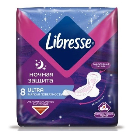 Бренд Libresse - является ведущим брендом средств женской гигиены и знает, что уверенность и комфорт подразумевают отсутствие страха, потому что ничто не должно мешать вести полноценную жизнь. Libressе предлагает широкий ассортимент гигиенических и ежедневных прокладок. LIBRESSE ПРОКЛАДКИ УЛЬТРА НОЧНЫЕ - ультратонкие ночные прокладки на критические дни с мягкой поверхностью Впитываемость: 6 капель Толщина 3 мм Длина 320 мм Крылышки - да Каждая прокладка в индивидуальной упаковке Прокладки Libresse с новым дышащим верхним слоем для более долгого ощущения свежести, а анатомическая форма впитывающего слоя надёжно защищает. Надежная защита и комфорт во время сна! Прокладки Libresse ULTRA SecureFit™ с тройной защитой от протеканий: - Быстро впитывающий центр - Впитывающие барьерчики для экстра защиты по бокам - Уникальная форма впитывающего слоя, который легко можно увидеть на просвет. Его раздвоенная форма задней части позволяет прокладке складываться и плотно прилегать к телу сзади, надежно защищая от протеканий.