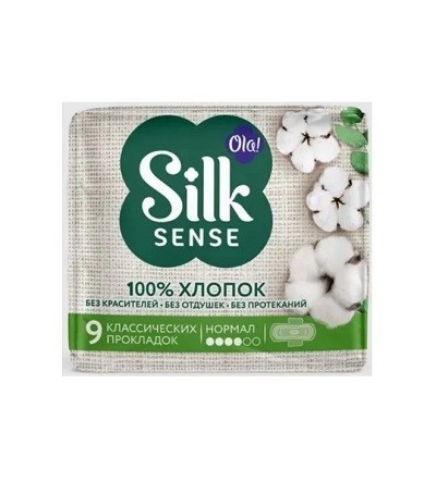 OLA SILK SENSE COTTON ПРОКЛАДКИ НОРМАЛ С ХЛОПКОВОЙ ПОВЕРХНОСТЬЮ - натуральная хлопковая защита в особые дни. Впитываемость: 4 капли (из 6) Крылышки - да Хлопковые прокладки Ola! Silk Sense Cotton NORMAL предназначены для нормальных выделений и обеспечивают бережную защиту от протеканий каждый день. Поверхность состоит из 100% хлопка, что позволяет избежать раздражений при соприкосновении с чувствительной кожей.