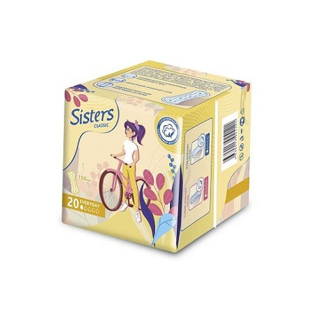 Может быть дополнительной защитой при использовании тампонов или специальных кремов. Средства личной гигиены одноразового использования для взрослых c маркировкой Sisters: прокладки женские ежедневные.