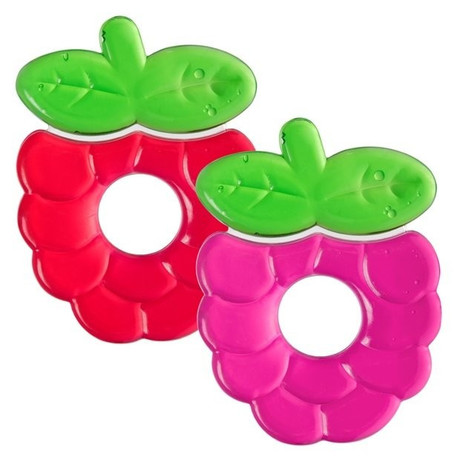 Прорезыватель используется в качестве массажера для десен и предназначен для снятия дискомфорта во время прорезывания зубов у ребенка. Два цвета в ассортименте: розовый и красный.