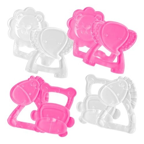 Курносики Прорезыватель силиконовый «Озорная компания», 2 шт. Комплектация прорезывателей: слон бледно-красный, слон прозрачный лев бледно-красный, лев прозрачный лошадка бледно-красная, лошадка прозрачная обезьяна бледно-красная, обезьяна прозрачная Мягкий силиконовый прорезыватель подходит малышам для снятия дискомфорта при прорезывании зубов. Прорезыватель легкий, из плотного силикона, с рельефными выступами. Форма и размер прорезывателя не позволит малышу проглотить его.