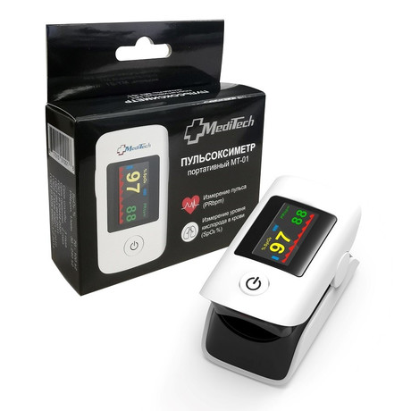 ПУЛЬСОКСИМЕТР ПОРТАТИВНЫЙ МТ-01 MediTech - пульсоксиметр портативный МТ-01 MediTech предназначен для быстрого измерения пульса и уровня насыщения кислородом гемоглобина артериальной крови человека у взрослых и детей в медицинских учреждениях и в домашних условиях. Прибор обеспечивает автоматическое измерение и индикацию степени насыщения кислородом гемоглобина артериальной крови человека неинвазивным методом в диапазоне от 70 до 99 % и частоты пульса в диапазоне от 30 до 240 ударов/мин; уровня пульсовой волны, отображение фотоплетизмограммы на дисплее OLED.