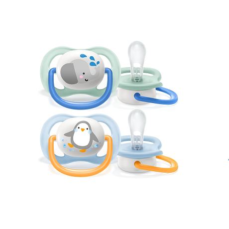 AVENT Пустышка ultra air Lime, Слон/Пингвин, 0-6 мес, 2 шт, для мальчиков. Успокойте своего малыша с помощью пустышки, которая позволяет коже дышать. Пустышка из коллекции Philips Avent ultra air имеет большие вентиляционные отверстия, поддерживающие сухость кожи. Легкий нагубник обеспечивает максимальный поток воздуха. Доступно несколько вариантов расцветки. Ортодонтические, без бисфенола-А.