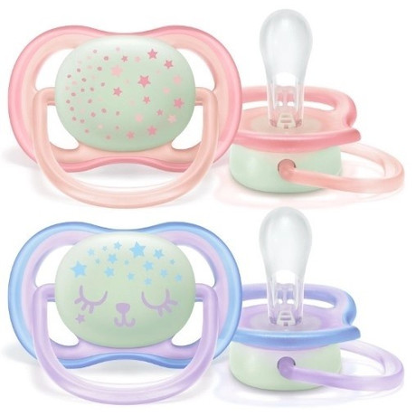 Бренд Avent - уже три десятилетия помогает молодым родителям растить малышей и делает их жизнь легче и приятнее. Линия Ultra Air - меньше раздражения на коже за счет увеличенных отверстий для воздуха АВЕНТ СОСКА-ПУСТЫШКА СИЛИКОНОВАЯ ULTRA AIR NIGHT ДЛЯ ДЕВОЧЕК 0-6МЕС N2 SCF376/12 - для чувствительной кожи малыша, со светящейся в темноте кнопкой Возраст: от 0 до 6 мес. Пол: девочки Цвет: розовый, фиолетовый Форма: ортодонтическая симметричная Тип соски-пустышки: ночная Легкая пустышка с дышащей текстурой для нежной кожи Успокойте своего малыша с помощью пустышки, которая позволяет коже дышать и которую легко найти ночью. Пустышка ultra air night имеет большие вентиляционные отверстия, чтобы чувствительная кожа оставалась сухой. Кроме того, на пустышке есть светящаяся в темноте кнопка, которая позволяет найти пустышку при выключенном свете. Заряжайте пустышку ultraairnight при дневном/домашнем освещении не менее часа.