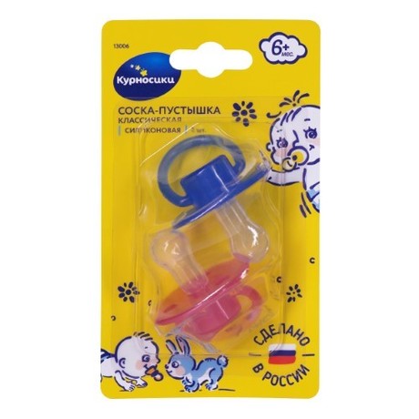 Бренд Курносики Соска-пустышка латексная, классическая - Артикул 13006 Рекомендованный возраст: с 6 месяцев Цвета: прозрачный розовый, прозрачный голубой Соска-пустышка силиконовая «Курносики» помогает успокоить малыша и сформировать у него правильный прикус. Баллончик пустышки изготовлен из силикона - синтетического эластичного материала, который не имеет вкуса и запаха, не мутнеет при стерилизации. Соска-пустышка классической формы всегда занимает минимальный объем во рту ребенка и правильное положение (имеет классическую (симметричную)) Большие отверстия нагубника обеспечивают свободную циркуляцию воздуха во время сосания и помогают предотвратить намокание и воспаление кожи вокруг рта.